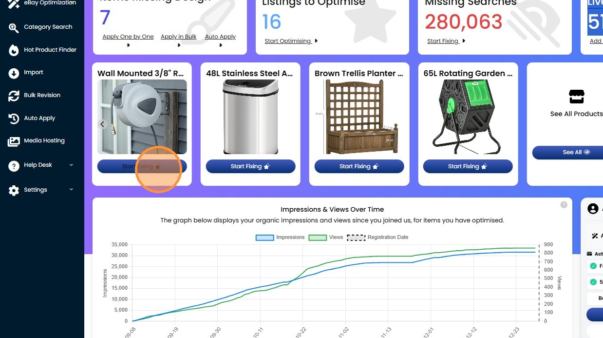 6. "Listings to Optimise" is the number of your eBay listings which need optimizing for better traffic, ranking, impressions, clicks, views, and sales on eBay, helping maximum listing performance.